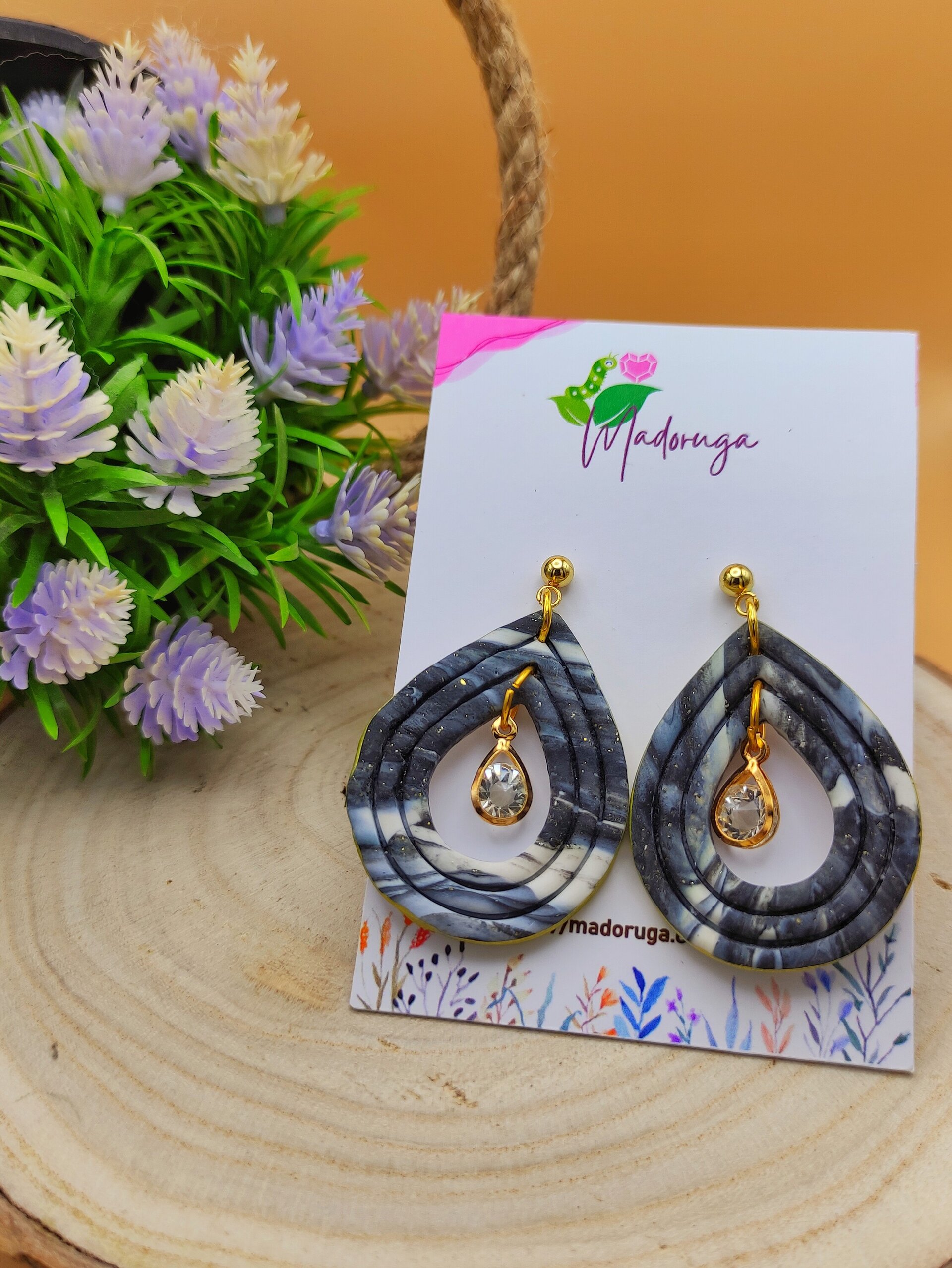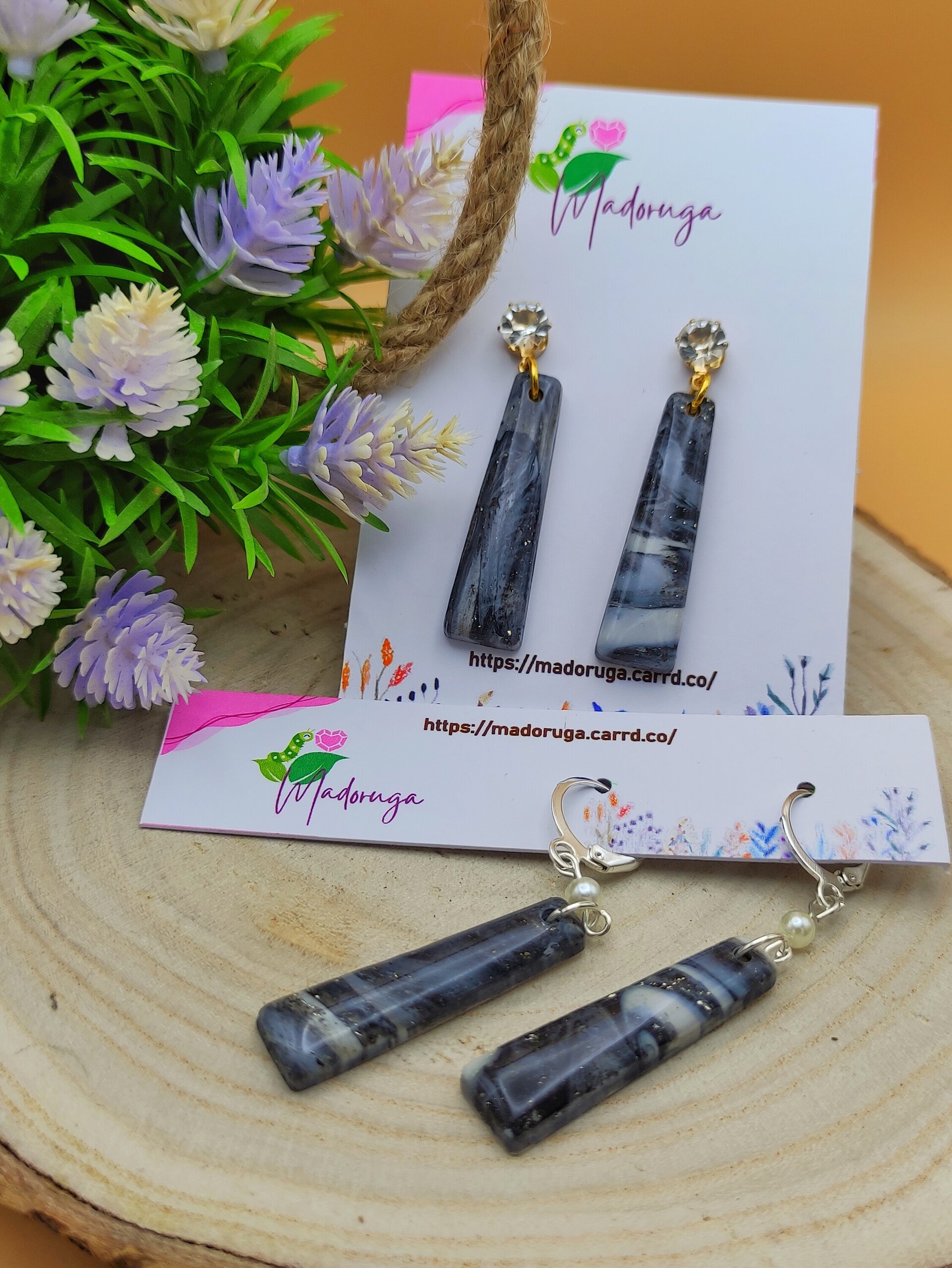 Pendientes “Noir Mármol” – Elegancia Minimalista en Blanco, Negro y Dorado